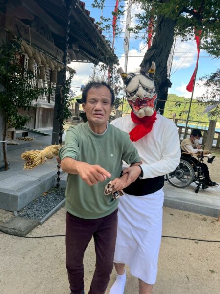 鬼には皆さん優しく叩かれて、中にはお面をつけてもらったり、わらの棒を渡してもらったりした方も!