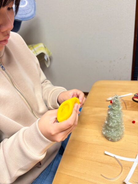 活動でいろいろな所に出かけていきますが、どこもツリーやリースを飾ってあり、見てるこちらをワクワクさせてくれます。利用者さんもテンションがちょっとアゲアゲになり、しぜんと笑顔になりますよね。