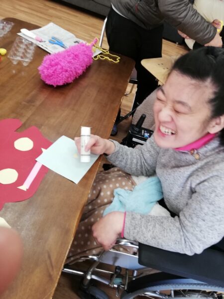 津田は鬼の面の型が出来上がったので今日は色付けをして行きました。スマートなスタイリッシュな鬼ができたらいいなぁと思っています。表情よく造形活動に参加されるみなさんです。