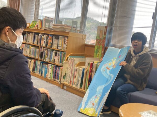 それぞれ好きなジャンルの本を読む利用者さんもいれば、読み聞かせをしてくださる利用者さん、それを聞く利用者さんもおられました。